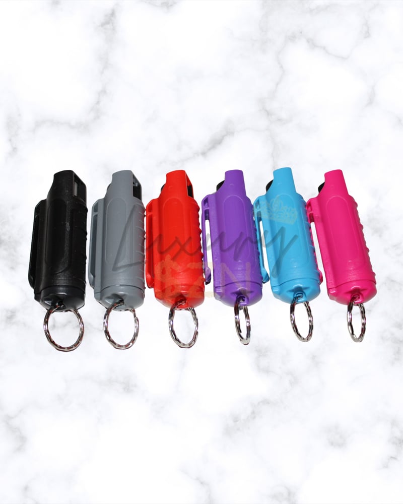 Stay safe with this compact personal spray. Its sleek design ensures quick access, perfect for travel or daily use. The keychain clip and built-in lock add convenience and style. Keep it on your keys or bag for peace of mind. 🚗✈️