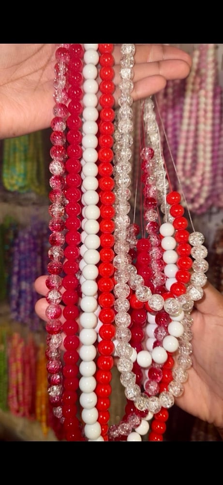 This bundle includes (5) STRANDS OF SIZE 10MM GLASS BEADS AS SHOWN IN THE PICTURE.